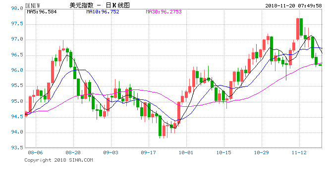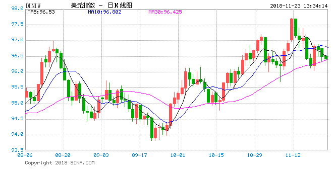 周三(11月21日)现货黄金温和收涨,亚市早盘开于1221.70美元/盎司后短暂下挫,录得日内低点1219.41美元/盎司后转涨,金价震荡上行。欧市金价跌宕起伏,多空争夺激烈,美市多头大力拉升,录得日内高点1230.07美元/盎司后转跌,震荡下行,最终收盘于1225.77美元/盎司。美元周三转跌,美元指数最低触及96.52,继续在97关口下方运行。 在2018年接近年末关口,市场一线投资者希望将黄金纳入其投资组合中,尤其当下美股大幅调整的情况下。衡量市场情绪的黄金ETF持仓近期一直增加,已升至三个月高位。随着宏观经济风险担忧的来临,尤其是系统性风险的可能发生,预计年末投资组合中分配给黄金的会