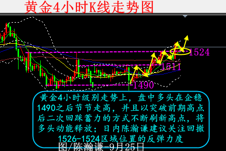 陈瀚谦:买盘蓄力避险发力,黄金多头节节高 沉默,是为了更好的爆发,这句话来形容昨日的黄金走势一点不为过;昨日黄金价格日内维持在1520上下横盘震荡,持续承压1523下方后连续维持横盘震荡,欧盘末随着英国最高法院判决英国议会休会违法之后,黄金价格短线快速走低至1515.3盎司/美元的日内低点获取支撑,并且在快速反弹至1520上方后逐渐走强至前期高点,而晚间随着避险情绪的高涨,黄金多头再次快速拉升10美金至1525.5盎司/美元的高点,随后快速回踩1525后二次走强至1530上方,最终收盘于1531.3盎司/美元,日K线再度收阳,形成四连阳状态; 黄金技术面上,昨日黄金价格回落反弹,日线再次收阳