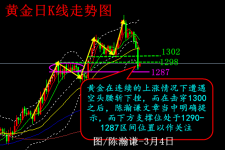 陈瀚谦:大阴下破金价失守1300,黄金加大波幅 今日又到周一,将迎来非农数据和失业率,而黄金市场在上周却是风起云涌,空头强势袭击;上周黄金开盘1328.7盎司/美元后反弹至1332.8的周内高位后承压,连续三个交易日维持反弹承压二次下跌局势,并且在周三一举跌破1325的强势支撑后下探1320下方;周四后金价维持调整并且受到避险影响盘中一度上冲至1327.1的高位后承压回落,并且在美盘时段跌破开盘价后下探至1312.3后低位调整,周五金价则是空头强势,开盘后即弱势整理,反弹至1315承压之后回落下探,欧盘后下探至1305后反弹至1311一线二次承压回落,美盘后金价第三次反弹1311后刷新130
