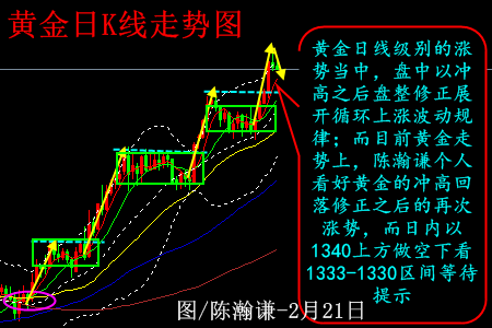 陈瀚谦:黄金实体大阳K线拉升突破,多单全线止盈 昨日周三,对于黄金来说,属于多头的狂欢夜,也是跟随瀚谦操作多单的止盈夜;昨日黄金开盘1325.9盎司/美元,亚盘整理调整之后回撤至1322.3盎司/美元的日内低位后止跌反弹,欧盘前后快速上攻刷新1327的前期高位后维持高位调整,直至美盘前黄金已经刷新1330的高位,并且多头毫无停止的意愿,盘中金价连续攻克1333之后再度发力冲高,美盘后金价维持日内单边涨势,晚间最高至1341.6盎司/美元后回落至1340.8收盘,日K线收取实体大阳线;今日早盘开盘后,黄金再度以1339上方调整之后,再次刷新1345盎司/美元新高,目前于1344上下整理; 黄金
