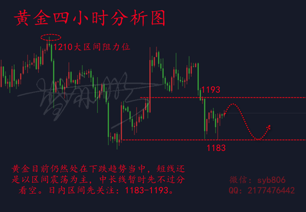 盛亦彬:8.24黄金破千二该做多做空?日间分析及策略 亦彬前言: 任何投资都是有一定风险的,要么不做,要做就做出一番名堂出来。那么在投资的道路上,没有百分百赚钱的秘籍,只有稳健的交易系统和一颗真诚的心。 行情回顾: 昨日日线收的一根带实体大阴线,日线走势上价格随着一波强势上探1200一线压制后承压逐步下行,昨日大阴收盘收回前期上涨一半涨幅,目前价格在1185附近震荡,四小时图上高点不断下移低点再不断下坡,同时昨日连收6根阴线,综上来看空头走势较为强劲,那么今日操作上还是看延续行情以空头为主。早盘激进者可现价轻仓做空,稳健者反弹高位做空。 消息面: 本次杰克逊霍尔年会将在北京时间8月24日21