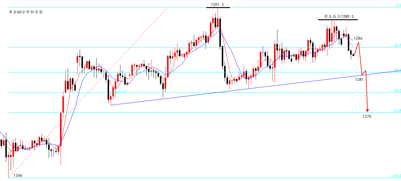 上周,黄金围绕1276-91区间进行窄幅震荡,看似以1266为双底的反抽颇为强势,实则只不过是一只纸老虎,反复测试上方1289-91阻力,皆未果,叫嚣着长线做多的老铁,不知道是有什么样的勇气。 今天,黄金价格跳空高开,后迎来迅速回落,并且60分钟连阴,跌破周五凌晨低点,属于典型的早间下跌,弱肯定是比较弱的,但还是要看午后能否延续? 一般震荡行情中,无论是早间下跌还是上涨,延续性都不是很好,所以切莫低位做空。 同时,上方1291以及1289压制是非常明显的,本身日线就处于震荡下跌的趋势之中,并且上周美方针对中方上调关税,避险情绪也未能促使价格的上涨,所以我从来不指望金价能有多大的反弹。 无论是