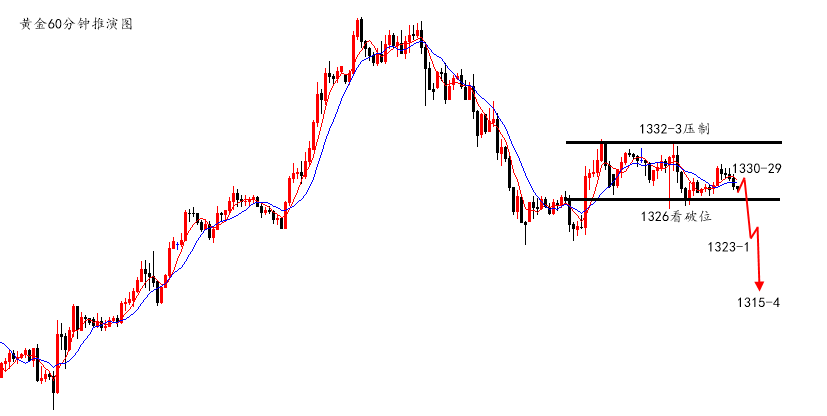 因市场原因,包括纽约商业交易所(NYMEX)平台上的WTI原油、美国天然气,纽约商品交易所(COMEX)平台上的黄金,芝加哥期货交易所(CBOT)平台上的玉米、小麦和大豆在内的CME商品期货合约,从早上8:40开始就无法交易。另,全部平台黄金,原油点差有所拉大。 所以,会出现这么一个现象,你拿了一年多的纸白银,早上发现暴涨的时候,你却没有办法平仓,“空欢喜一场”被展现的淋漓尽致。提醒交易者不要惊慌,暂时保持仓位等待市场恢复。 本周初,黄金连续收小十字K,1332-3多次测试不破,1326多次下探,虽破位数次,但最后均以探底回升的形式形成虚破,日线大阴后持续震荡。 如此走势,其实更多的是建议观