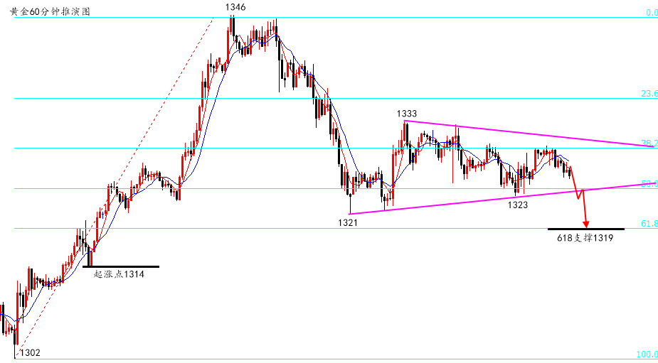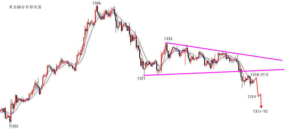 周三,黄金以触不及防的方式选择向下破位收敛三角,说是触不及防,我认为是对无数在1327-8做多的同胞的一种心理安慰。泄洪的感觉怕是只有我们才能体会! 上周末,我写了一篇关于长线计划的文章《沈皓南:黄金是否可以长线空?‘三角震荡’见分晓!》,里面明确说到黄金自1160上涨1346,已经进入时间和涨幅双风险区域,并且有两个重要提示: 一、你可以做多,但要谨慎多,而且必须带损,一定要轻仓; 二、为了防止无法突破1346,给到1355-60-65做空位置,我会尝试提前做空,以波段变长线的方式实现空头宏伟的计划。 目前,已经有部分5-10万美金朋友上车了,车次分别为1330-1空、1328-7空、13