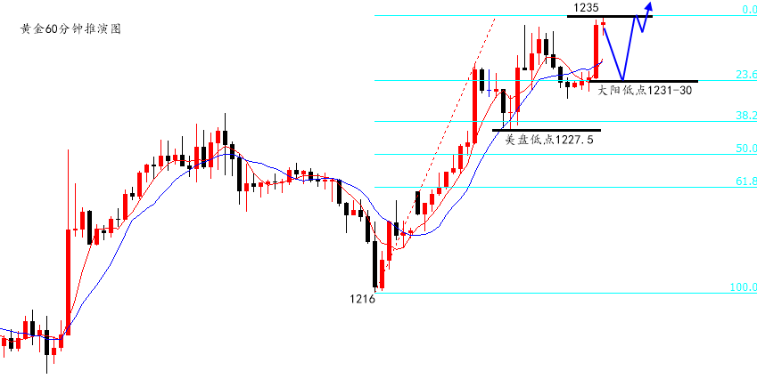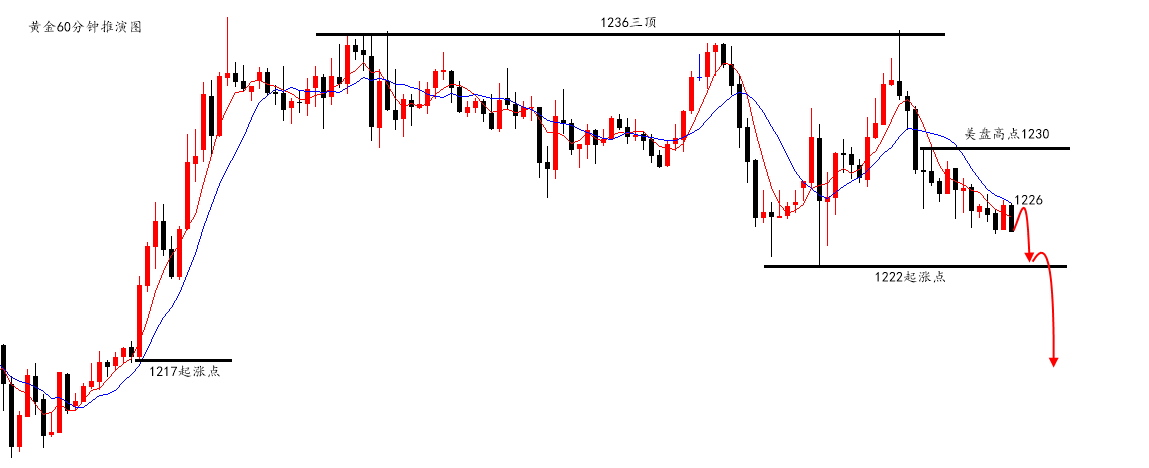 这么冷的天,我们依然要舍弃我们温暖的被窝起床上班,为我们这些人点赞。上午好,朋友们! 周三,黄金走了一次“倒V”,白盘在中期选举推动下逼空上涨1236,较遗憾的是美盘和周二一样未能延续上涨,同样以60分钟连阴下跌的方式吞没日内涨幅,最终金价低位收盘,日线报收长上影十字K。 近日,连续三次冲击1236均已失败而告终,只能说明1236位置的阻力真的很强,除此之外找不到第二个理由。同时,我们也会发现,日线大阳拔起之后已经连续录得四根阴线,尽管未能吞噬大阳,但日线震荡下跌的模式已经形成。 那么,今日较为简单,顺势继续看回撤即可,尤其昨日美盘下跌,尾盘低位收盘,按照弱势对待的话,次日早盘反抽需要跟空一
