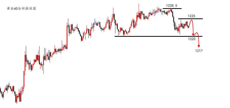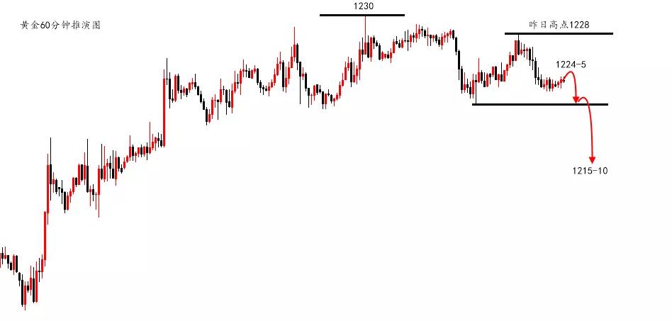 昨日黄金如我们想的一样到达上方的1228-29一线。但回落的力度以及时间点跟我们预期不一样。一方面,前一日的爆发,是依托了凌晨单阳的模式上升。这种单阳的模式经常延续性较差。所以,在第二日上涨时我们期待他在前一日的基础上刺破后,回落,继续走震荡修正。 但反过头来看,日内缓慢上行,美盘只是稍微的弥补上升,而随后凌晨回落。这种走法完全是一种震荡的走法。 这两周行情一直在1220-1230走区间性震荡。没有过多的突破,也没有延续。这就表明短期我们看行情突破或者延续的概率不是很大。 特别是在今日周五的行情当中。目前面对价格比较尴尬的时候今日依然看震荡。因为这种博弈突破的概率还是偏小。 那么在今日行情当