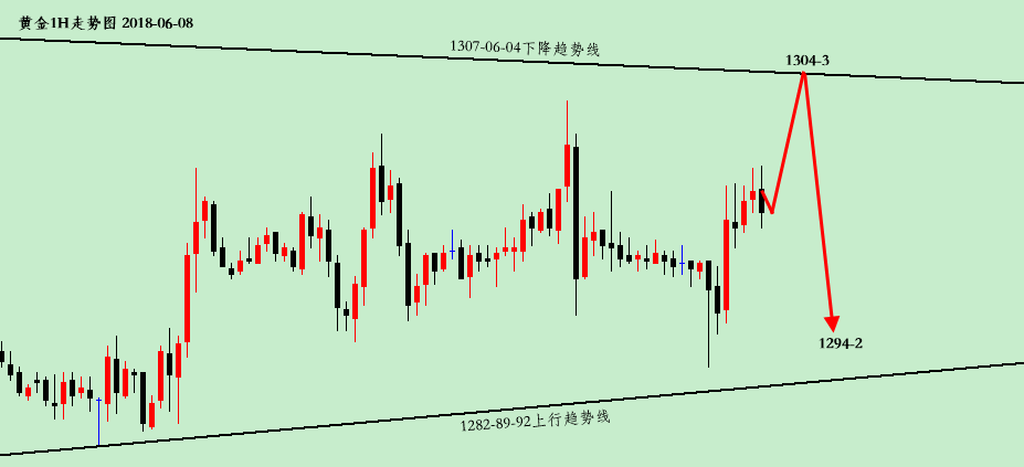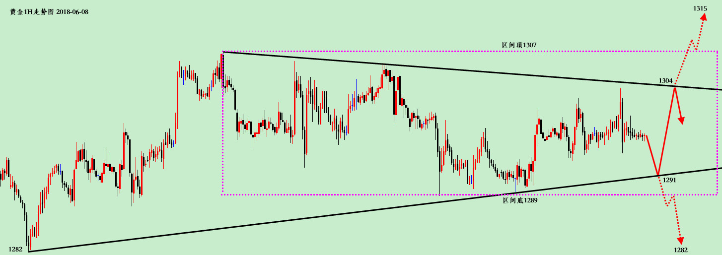 不要盘算太多,要顺其自然,大智慧者分天下,小聪明者失江山,积极的人像太阳,走到哪里哪里亮,消极的人似月亮,初一十五不一样。当抱怨成为口语,当懒散成为状态,没有自我提升何为君临天下?没有不断进步何来拥抱未来?认真对待每一次的机会,未来的你才会感谢今天的自己。我的朋友们,加油! 白盘行情点评:黄金,本周三次冲高1300-1回落,日线二度报收长上影十字K,说明上方区间顶1307压制极强,下周四利率决议之前不看好突破,形态上除1307-1289区间震荡外,还呈现以1282-89-91为下边线,1307-06-04为上边线的收敛三角形态,操作上建议1307-1289区间做,先反弹三角震荡上轨1303-