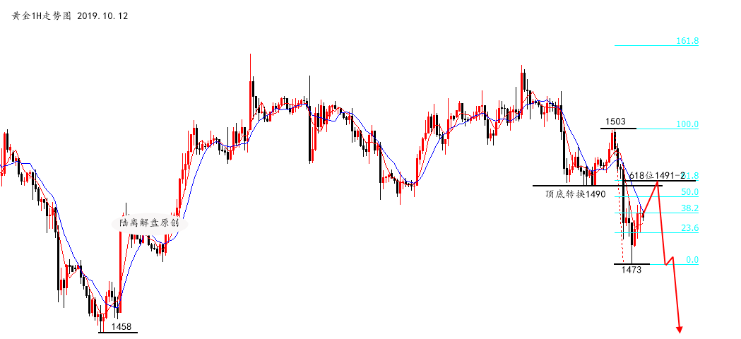 简单说下今天的操作。 昨日周评《沈皓南:黄金1515波段空完美狙击,期待下一次!》分析,其中提到今日可以根据“顶底转换”以及“618原则”在1490-2分批布局空单。 理由就是,周五尾盘阶段从1473反抽至1486,幅度13美金,反抽过大自然而然这并不是极弱,而是震荡。 震荡行情中,最保守的策略就是在618位置做空,这里再重复一遍,震荡行情中,618位置宁可做错不可错过,所以可以空,而上周五1503-1473下跌过程618位置在1491-2,因此决定初步做空位。 除此之外,上周五是破位起涨点1490之后迎来瀑布,1490从支撑变成了阻力,即为“顶底转换”,这个位置也是比较好的做空位。 最后,
