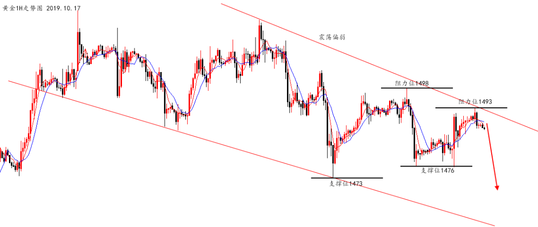 周二,黄金亚盘上涨,午后下跌,欧盘上涨破高(虚破),美盘测试1498之后回落并连阴下跌,凌晨横盘整理,这种信号一般第二日会形成二次下跌,早间以反弹空为主,但又因为日线呈单阳连阴,还看不到明显的极弱信号,我们暂时把做空位放在大阴顶端及1H布林共振的地方1487-8,618位1490-91留一次补仓机会,目标1473-58。 文/沈皓南