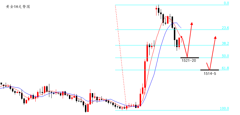 周一,黄金跳空高开至1549,但亚欧盘却以“单阳连阴”模式下跌,美盘反抽1537后二次下跌,缺口回补,日线大阴。 还依然是避险情绪和连续性的问题,上周五大阳主因是避险情绪推动,昨日收阴避险情绪失效,连续性不强,今日不可盲目高位接多。 当做上涨行情中的修正看待即可,上涨行情中出现大阴,只是单根阴线是无法确定多头转空头的,除非是连续性并且快速的较大回撤才有可能转空头,因此,不高位接多的同时,要放弃空单的博弈。 和昨日美盘思路一样,低多对待,规避了做空的风险看多头修正,但是做多点位可能会更加保守,因为今天权当自修,既然是自修,免不了就是一个震荡的过程。 下方关注1493-1549过程618支撑15
