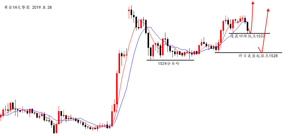 晚上好,老铁们! 黄金,今天跳空高开至1549,让人眼前一亮,不过亚欧盘下跌,回补缺口之后并未能重启多头,多少让人有些失望。 因为午后,我们安排了1529-8的多单,最高反抽只触及1535-36,原本期望可以回补缺口后反抽至1549,现在看来希望不大。 幸运的是,我们实盘伙伴安排的1529-8多单已经提示1535-36获利出局,以盈利的姿态面对美盘,应该是一件特别享受的事情,至少,压力没那么大。 亚盘下跌,欧盘续跌,小时线呈单阳连阴,目前来看,美盘突破1549新高没戏了,相反,黄金价格借助亚欧盘弱势,美盘前后再下探一波的可能性增大。 虽然这么说,但空单依然不建议,因为前一日大涨,今日早间延续