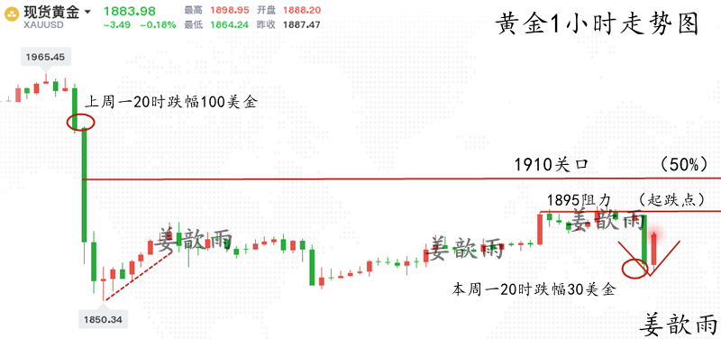风险提示:个人投资风险-稳健型;投资策略-价值投资;适合用户-追求稳定收益并希望长期在市场生存的广大用户! 以下是本周的一个黄金形态复盘和看盘总结以及下周初行情的一个推演看法,喜欢的朋友可以长期关注起来。本周对于金银而言是起落比较大的一周,从高位跌落到低位也是一瞬间的事情,随后的行情就是喜闻乐见的修正局面。那么在这里歆雨也是对本周的行情来做一个简单的梳理和分析! Part 1:浦发银行周行情预测(五点要领) 预测1:黄金1890短期作为操作基点,这个位置止损好设;1890上方最近的目标1900,能够在1900上方,消息面必须给力才行;1890下方运行依然是弱势熊途准备。 预测2:白银在24.