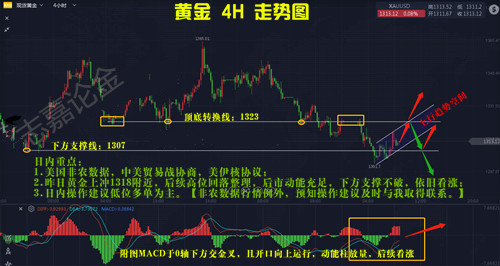 转眼一周的时间又到了周五,由于五一假期的缘故,本周才工作了两天又到了周五;打起精神迎接本周最后一天的工作,而黄金市场周五晚间将迎来本周重磅行情,美国非农业就业报告;黄金价格面临着重大考验,回顾本周的走势,截止目前整体还是维持弱势,周初两天持续下跌一度下探1302附近低点,随后震荡回升,隔夜金价因避险情绪的