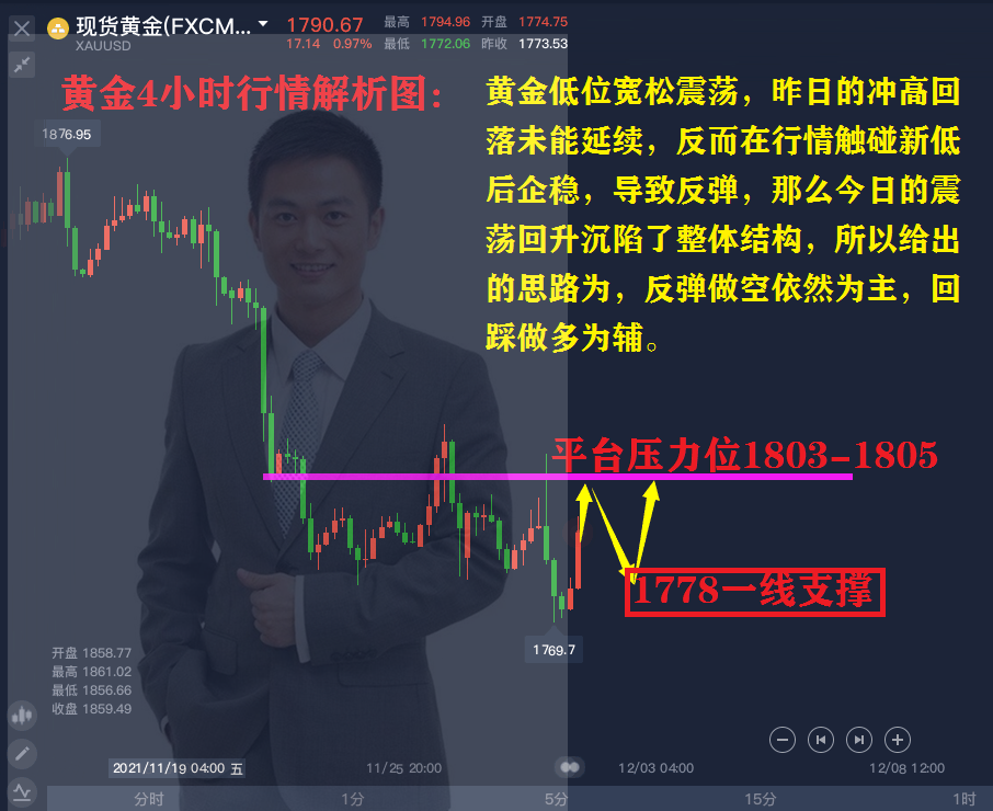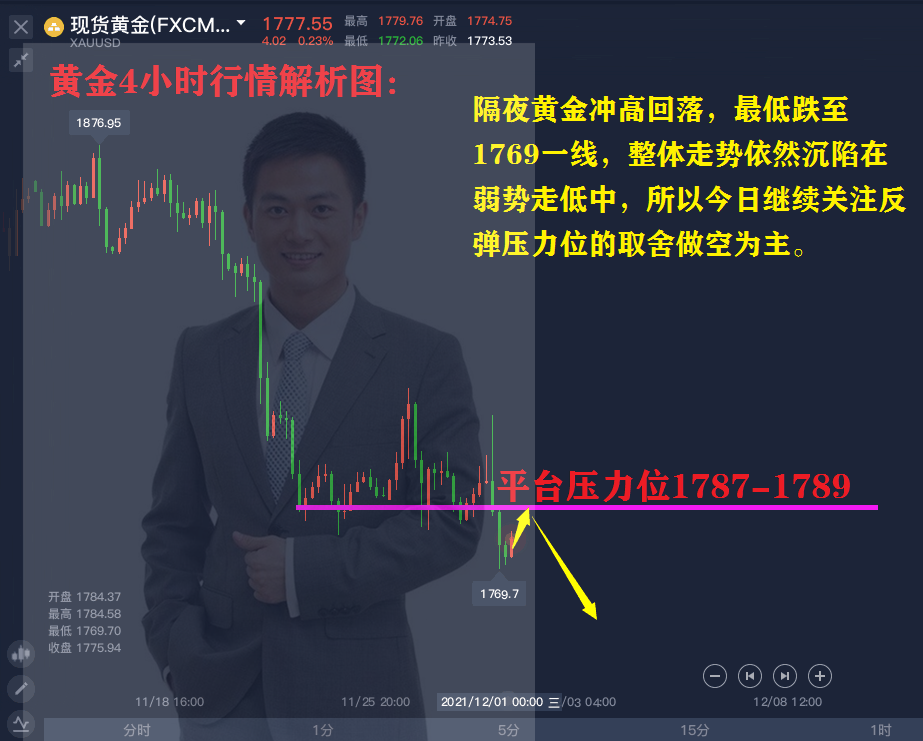 博旺论金文章摘要:2021年12月2日新手炒黄金需要知道哪些常识?12.2黄金低位震荡后市 还会涨吗?12.2黄金多单被套怎么解套?12.2原油大跌能否抄底做多?12.2本周大非农黄金还会跌吗?12.2今日黄金大趋势多空怎么看?12.2伦敦金中长线如何稳健布局? 周三行情回顾:黄金凌晨因时间的原因,1808空单在持有至1774一线,选择在凌晨2点左右获利出局!下午时段行情在震荡过程中,冲高回踩,给到我们做空的机会,所以现价通知1786空单进场,随后行情延续跌势寻找确认点,那么空单瞬间获利6美金出局!当行情冲高回踩二次确认低点支撑时,我们依靠平台支撑位1778-1775一线