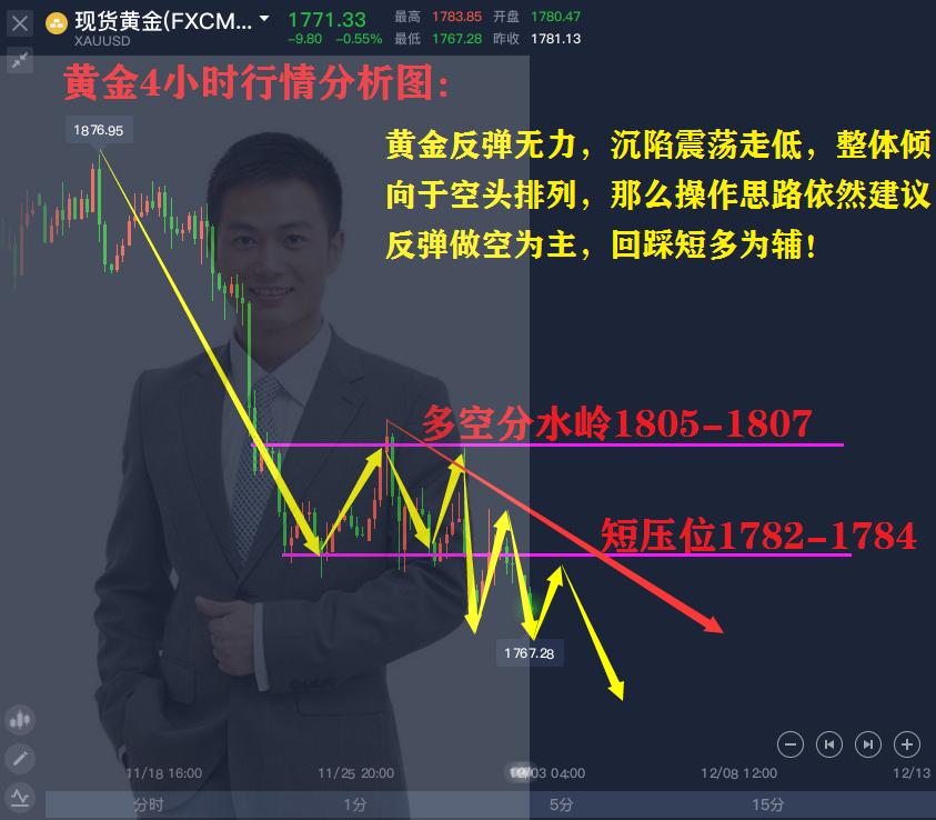 博旺论金文章摘要:2021年12月5日新手炒黄金需要知道哪些常识?12.5黄金低位震荡后市 还会跌吗?12.5黄金多单被套怎么解套?12.5原油大跌能否抄底做多?12.5下周一黄金大趋势多空怎么看?12.5伦敦金中长线如何稳健布局?12.5周一黄金会高开还是低开? 黄金行情回顾: 周五黄金延续隔夜探底回升走势,顾,早间根据技术面研判结论给出,后市延续性反弹的需求逐渐加大,所以早间在线,通知所有实盘以及体验的实时朋友布局多单,在行情的慢性震荡上行走势,下午时段短多选择获利出局!那么多单出局后行情受压回落至1766一线,我们继续做多看涨。因下方结构倾向于筑底形态,所以回踩就是看多