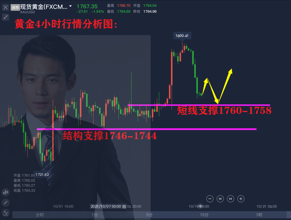 文章摘要:2021年10月号19新手炒黄金需要知道哪些常识?10.19本周黄金中长线怎么布局?10.19外汇黄金大趋势还看空吗?10.19原油是否可以抄顶?原油中长线空单可以布局吗?10.19黄金大涨大跌后市怎么看?10.19黄金区间震荡如何布局?10.19周二黄金会出现单边行情吗? 周一黄金原油行情回顾: 黄金早间开盘后回踩1764一线反弹修复,最高反弹至1772一线,随后震荡下跌至1760一线,此位置是亦恒老师在周末至周一,行情分析图上特意提示的短线关键支撑位置。1760-1758一线,所以我们多单因此也止盈出局!那么原油方面:早间的高开高走,沉陷出整体的行情依旧是强