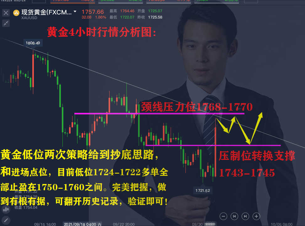 文章摘要:2021年10月号1新手炒黄金需要知道哪些常识?10.1黄金单子被套怎么解套?10.1本周黄金中长线怎么布局?10.1外汇黄金大趋势还看空吗?10.1原油冲高回落今日还会跌吗?10.1原油是否筑顶?中长线空单怎么布局?10.1黄金不断下跌能否抄底做多?10.1黄金为何大涨? 周四行情回顾: 黄金多次探底,在日线关键支撑位1722-1720一线形成筑底,加双底反弹回升,在这样的行情提前,亦恒老师就一直在说,1724-1722一线可抄底做多,止损1718一线,目标看1730-1740-1750附近区域,文章可事实翻开验证即可!那么今日黄金再次触底反弹,我们多单完