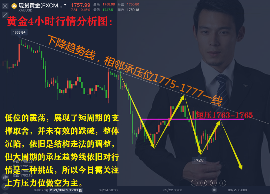 文章摘要:2021年9月号28新手炒黄金需要知道哪些常识?9.28黄金单子被套怎么解套?9.28本周黄金中长线怎么布局?9.28黄金低位区间震荡怎么布局?9.28外汇黄金大趋势还看空吗?9.28原油多头继续上攻本周还会跌吗?9.28美联储及欧洲央行多名官员讲话对黄金有什么影响? 周一行情回顾: 黄金早间开盘与1749一线,开始横盘整理。随后反弹走高至1760一线受压回落,我们早间多单因此获利出局!因亦恒老师周末两天文章,技术面分析图上明确给到思路,做空为主。所以接近1763-1765短压附近多单都需要根据当下情况选择落袋为安。那么在黄金行情受压的情况下,开始走回落走势,我