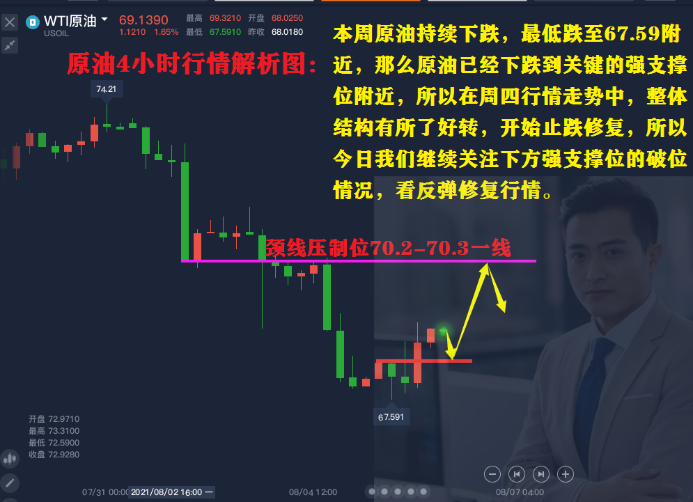 李鸿涛文章摘要:2021年8月号12新手炒黄金需要知道哪些常识?8.12投资外汇黄金能赚钱吗?8.12黄金多空该如何抉择?8.12今日黄金走势还会跌吗?8.12做黄金怎么做才能避免爆仓?8.12黄金多空怎么看?8.12原油大跌能否抄底做多?8.12黄金区间震荡后市还会涨吗? 黄金原油行情回顾: 今日三,早间黄金开盘在1729一线,随后回踩,最低跌至1723一线,止跌企稳反弹,那么我们根据技术面分析给出的做单依据,在1728一线做多,止损设置在早间低点位置,在行情强势反弹之势我们的多单被打了止盈位。1735一线。 下午时段原油在相邻的高点68.8-68.9一线的压制