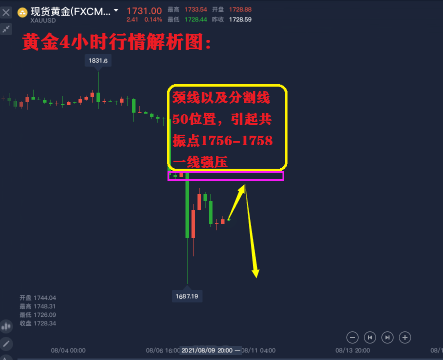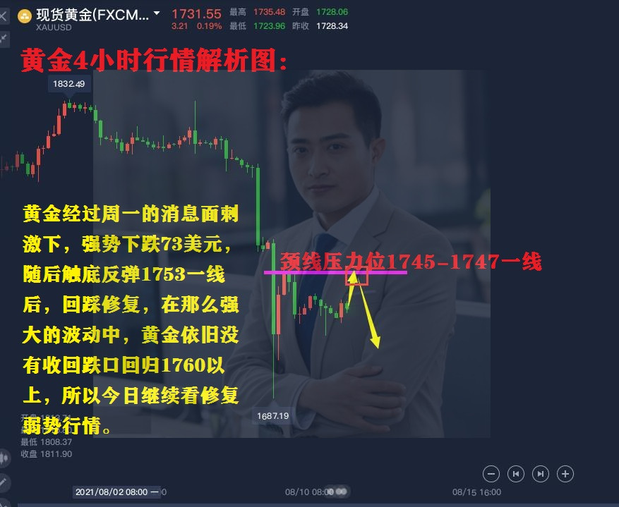 李鸿涛文章摘要:2021年8月号13新手炒黄金需要知道哪些常识?8.13投资外汇黄金能赚钱吗?8.13黄金大趋势看涨看跌?8.13黄金走势还会跌吗?8.13黄金怎么做才能避免爆仓?8.13黄金多空怎么看?8.13原油大跌能否抄底做多?8.13黄金区间震荡后市还会涨吗?8.13黄金中长线怎么操作? 黄金原油行情回顾: 周四,黄金开盘在1749附近震荡修复,上午时段开始延续短期反弹之势,最高反弹1758一线,受压回落。那么此位置也是我们在早间文章中,以及分析图,给到的做空位置,所以在行情触碰此位置时,等待K线形态的出现,我们空单选择性进场。因白盘行情震荡整理较大,为了完全期间,