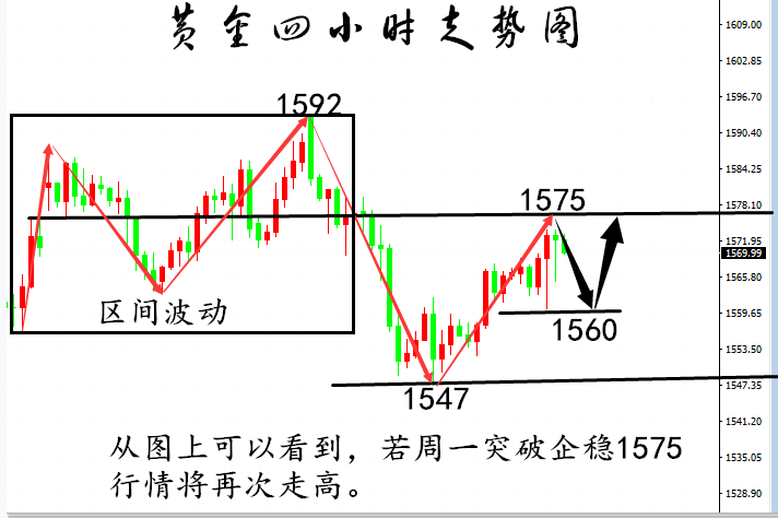水满则溢,月满则亏,自满则败,自矜则愚,回避现实的人,未来将更加不理想,市场洗刷,唯强者风采依旧,市场多变,逆主流而行已经成为常态,当很多人看空的时候,可能多头正即将要到来,多空的快速转换,总是令人措手不及,强弱的转换只在那一瞬间,交易就是要做对的事情,把事情做对,跟对人,才能做对事。 【黄金行情回顾】 周一受消息面影响,避险情绪高涨,黄金价格出现高开高走趋势,最高反弹1593一线后承压回落,最终收实体阴线;周二避险情绪消退,黄金开盘即跌,日内延续跌势,最低触及1548附近,同样以实体阴线收盘在1552附近;周三、周四延续跌势,最低给到1548后止跌反弹,小非农利空,不跌反升,最终收盘高位;