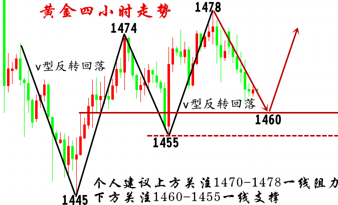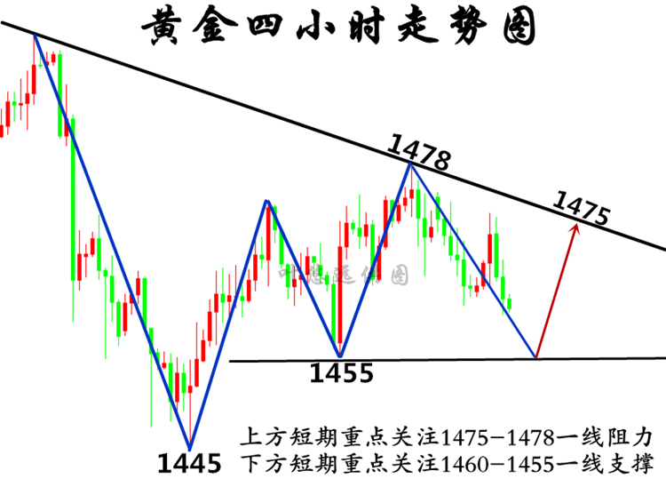 每个人都会有一段异常艰难的时光,生活的窘迫,工作的失意,学业的压力,爱的惶惶不可终日。挺过来的,人生就会豁然开朗;挺不过来的,时间也会教会你怎么与它们握手言和,所以你不必害怕。 【消息面解析】 昨日盘金价围绕在1460美元下方运行,触低至1452美元后持续整固,这也是金价第五个交易日维持着震荡,能否实现突破?市场都在期待能够在今日走出这样区间,以结束这小范围的纠结局面,因为今日是本周最后一个交日,也是周线及月线收官之际,对于后市走向起到非常关键的指引左右。 叶悠远分析价格之所以维持较长时间的整理,一方面是前期下跌后导致空头没有足够强的势能在支持其下探,空间受限!另一方面则是多方受制整体趋