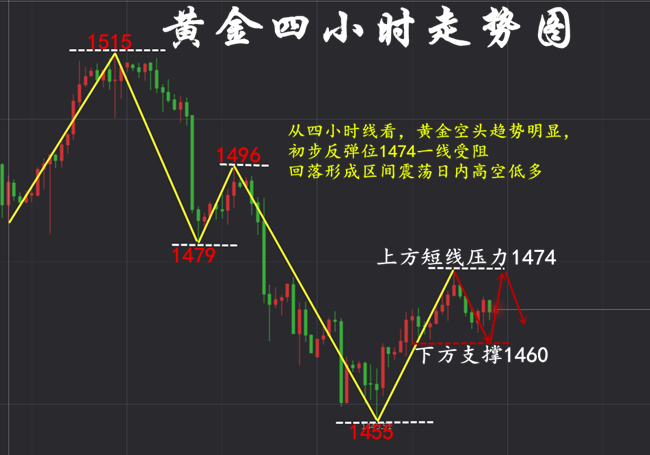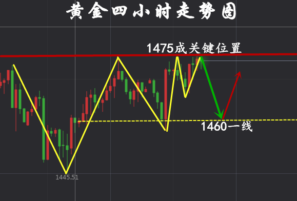 一个成功的投资者,其个人能力是必不可少的,交易经验也是重要因素,但这些条件的前提是投资者必须拥有健康良好的交易心态。只有这样,投资者才能在投资领域长远地走下去! 【叶悠远黄金行情走势分析】 上周黄金回撤至1445一线后连续震荡回弹,上方测压至1474一线再度受阻回修,周线收得一阴星线,承压在多条均线下方,属于对前一周大阴线的消化震荡过程,表明其整体结构依旧偏弱。 日线结构上,黄金自预期的支撑带1450-40区域内回弹,虽然站上5日线上,但10日线又再度带来压制,且此技术压制会随着时间的推移而逐渐转强,此外上方20日线1480附近的压制会更为强劲。所以技术上来看,黄金短期内是难以获得更多的回升