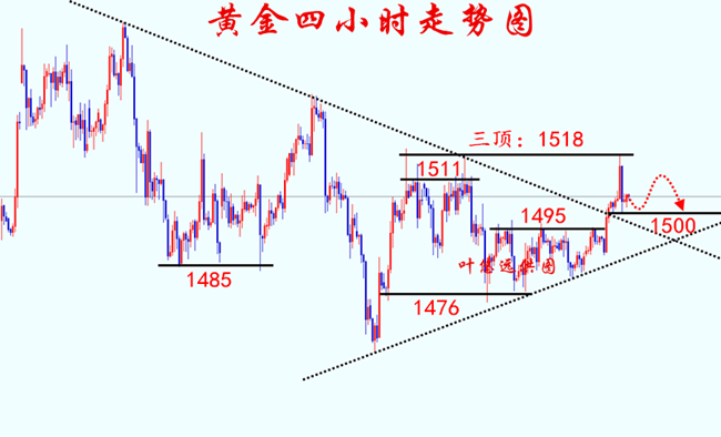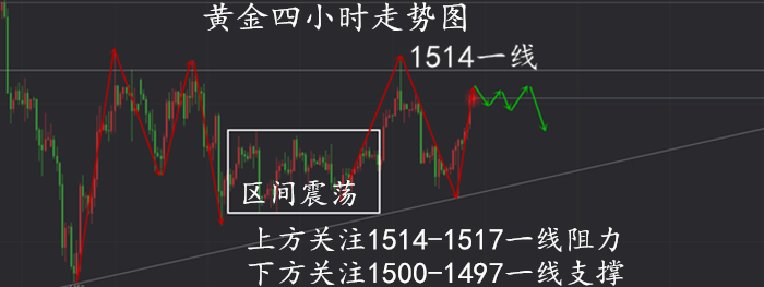 没有不破的震荡,没有不晴的雨季!一天有早晚、早晚有一天。起来的很早,却看了很久,看好了再写这是分析,为了写而写这是任务,没有规定时间,却心中有把尺子。曾在书上看到这样一句话:“投资如同钓鱼,每次抛出去的钩并不见得都有收获,但你心中要永远寄予希望,经得起鱼漂的上下沉浮,把握好手中的这根鱼竿,娴熟的技巧来自于时间的积累”。 ——日内总结:想要成为赢家,你必须要稳—— 黄金探高不破高,尾盘承压回落收在低位,最高上探1514.7一线承压,没能突破前一日高点以及区间上轨1517打开上行空间,尾盘回撤至1504.40美元|盎司低位,同时收盘在1510下方。日图小阴线收盘。 黄金昨日开盘在1513一线,美