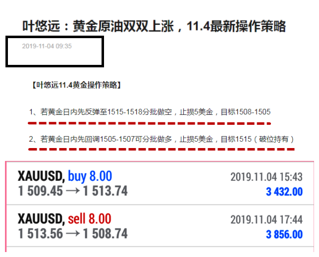 同一个市场,不同的思路,有人看空就有人看多,市场评论众多,看多了,反而扰乱了自己的思路,我常说交易重在节奏,节奏乱了,交易就会杂乱无章,所以每一天都站在行情的一线,走在盈利的前沿,每一个早上都有一个新的计划,这就叫做规划,作为一个成功的交易者,无乱于心,坚定思路很重要,如果你一直在被行情的涨跌牵着鼻子走,那么你永远都是后知后觉的。 ——日内总结:想要成为赢家,你必须要稳—— 今日黄金交易总结,早间悠远打开盘面发现黄金走出V形反转,根据悠远多年来判断,黄金肯定要上涨,于是发推文《叶悠远:10.31黄金月线收官,搭上V型反转多单可解套》中,看涨思路,晚间成功扫止盈位置,那么今晚美盘黄金将如何演绎