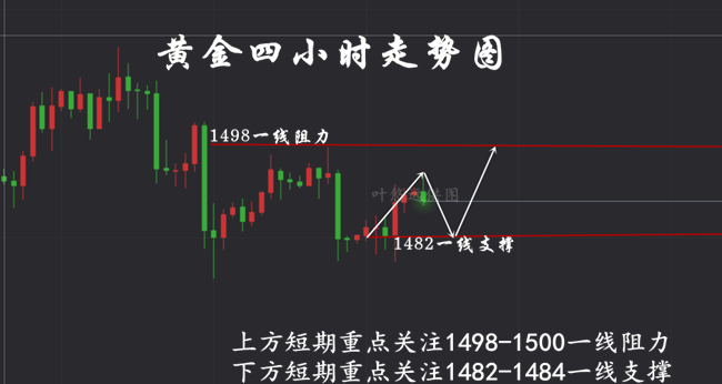 时光,增厚了岁月的年轮,沉淀了生命的厚重,我们终究背负不起太多,只有怀揣一份冷暖自知的满足,把握好眼前的幸福,以简单之心,去读懂日子的艰辛与美好,认为值得的,就真心守候;认为幸福的,就珍惜珍重,只要活得快乐,活得从容洒脱,便是没有白活。 【叶悠远10.15黄金行情走势分析】 黄金昨日低位回升收高,守住上周五的低点上方整理过渡。一度反弹至1497美元|盎司高位,探高后承压回测1488。最终收盘在1492日图收成中阳线。收盘在中性偏高的位置。使得日图弱势难延续。拉锯仍持续。日图阴阳转换震荡,不是简单的单边下跌,目前还处于下行趋势线之下的空头调整趋势,短线未站稳1520平台高点之前。日图依旧看调整