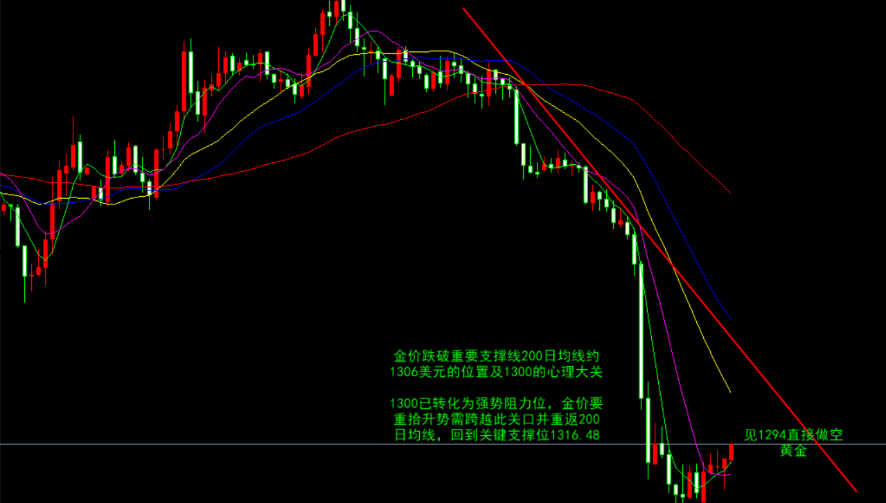 不要被行情勾引了,一定要管住你的手,大部分亏损不是因为技术,是因为做了不该做的交易。长短线其实并无优劣之分,短线是提供给小资金快速成长的最好办法,长线配合投资组合策略是提供给大资金寻求稳定增长的最好办法。短线吃的是青春饭,随着年龄的增长,总是需要过渡到长线。从短线向长线过渡,由快向慢过渡不仅是代表着投资者综合水平的拓宽,也是一种人生的不同阶段。以短线的手法配合长线的构架,可以发展出相当强大的投资体系 上个交易日市场受非农数据打压,5月非农数据好于预期,市场在10分钟内涌入了44亿美元合约,数据公布后,美元指数走高,而金价进一步走低,跌破1290.最低下探到1286.20后回升,最终收于129