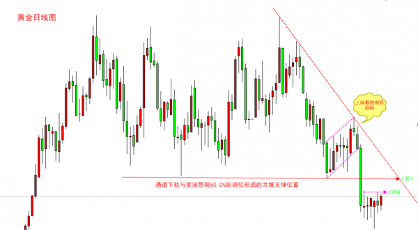 投资如出海,避险才安全。海底的沉船都有一堆航海图。交易成功最重要的因素并不在于用的是哪一套规则,哪一张航海图,而在于你的自律功夫,在于你是否懂得最佳的避险方案。 上个交易日金价开盘于1290.80,小幅上涨后转跌,欧盘强势反弹,多头大力上攻,触及日内高点1297.80.但金价未能突破前高,美盘金价跳水急挫,不断触及
