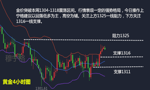 做投资不要抱着一夜暴富的心理,在穆老师投资生涯中,宁格一直都坚持这样的投资理念:投资最重要的不是你一次能够赚取多少,而是你能不能稳定地获利,长久地立足生存。 【消息面】 周四现货黄金开盘在1312.37美元/盎司,亚盘窄幅震荡,欧盘探底回升破位早间高点1315,局势转强。消息面上,中东乱局继续阴云密布,晚间CPI数