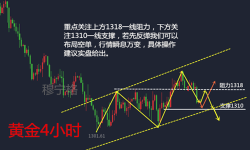 面对所有人,交易中会经常出现一些自己防不胜防的走势和损失。当面对猝不及防的走势,你要做的就是减少损失或者及时离场。面对损失时,就要想方设法的减少损失,不可久久恋战市场。如果做不到退而结网,注定你成不了大器。能舍才有得。 大家早上好,昨日亚盘行情弱势,不到1318直接1313一线顺势做空,破位1310后1307激进追空