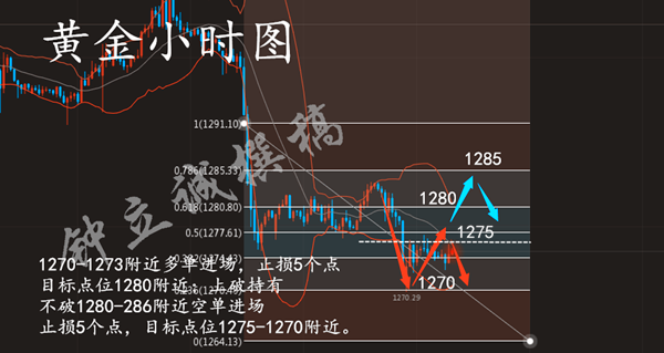 要想游得快,借潮汐的力量要比用手划水快的多,金市不顺手的时候应出局,待调整好状态之后再来,一直坚持的是要循循渐进之,但大多人不以为然,看到点趋势就立马入场,结果往往几次盈还没有一次损的多。 ---金市要闻--- 上周以来,中和美贸易的局势出现升温的迹象对金价影响有限。但随着双方之间的紧张关系有进一步升级的迹象,以及股市近期以来均出现回落,有关贸易所引发的升温随时可能或将对金价构成支撑。同时这也给美指多头套上了新的枷锁。 水性还没练好,就不要冒险仓促下水。市场跟做人一样要忍得了诱惑,禁得住寂寞。 ---今日行情解析--- 四小时技术面上围绕1280连续阴阳相互转换,说明此位置的支撑比较强,五日