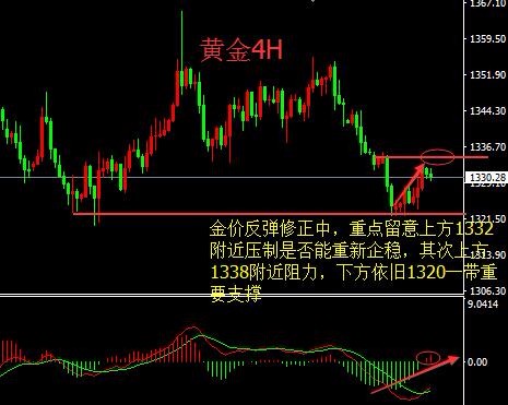 随着美国基准国债收益率进一步攀升,美元指数在91关口上方维持涨势,持续打压非美货币及黄金白银价格。以此同时,中美贸易战和地缘政治的缓和,也在一定程度上打压了黄金白银价格。美国国债收益率面临心理关口,后市需持续关注其变化。 走势上,黄金价格昨日开盘后延续小幅震荡上行,但始终未能站稳1332一线,欧美盘内金价逐