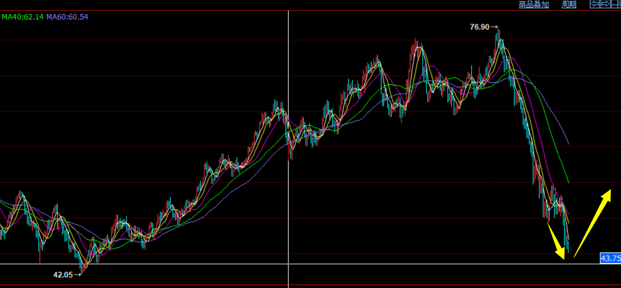 一再期盼原油底在何方,前面我们说了美俄两国的原油产量提速的事情,我认为是像诸如美俄产油量的上升,造成市场原油供需出现失衡,令油价一跌再跌,也就是说,油价的走跌完全是全球市场行情的体现,所以没什么好意外的。这点我在之前的文章中也都有叙述。从51美元的时候博夕老师就一直保持看45.7的观点,也在一直强调没有什么50美元抄底,48美元抄底,在朋友圈都有体现,如果你看到了,就不会在上面这些位置抄底了。就目前的行情来说,从两年来行情触及该位置来说,下方还有一定的利润空间(2美金左右) 就现在的原油行情来说,是没有任何技术可言的,接下来的走势也没有什么技术可言,那可能大家可能会想,那接下来我们就靠蒙着进