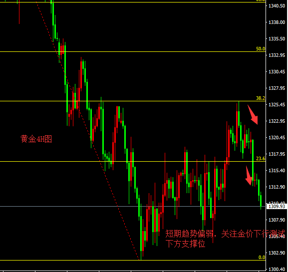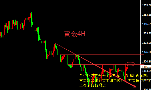 聂易铭:5.14黄金多头已露锋芒,回撤做多蓄势待发 周一(5月14日)黄金开盘于1319.95一线,上周五,黄金由涨转跌,出现倒V逆转,再度跌破1320关口,但终于止住此前连跌3周的势头。聂易铭认为,上周黄金的反弹主要是由于美元回调引发黄金空头回补,其次才是避险情绪对金价构成的支撑,而当前,除非局势进一步恶化,才可能为黄