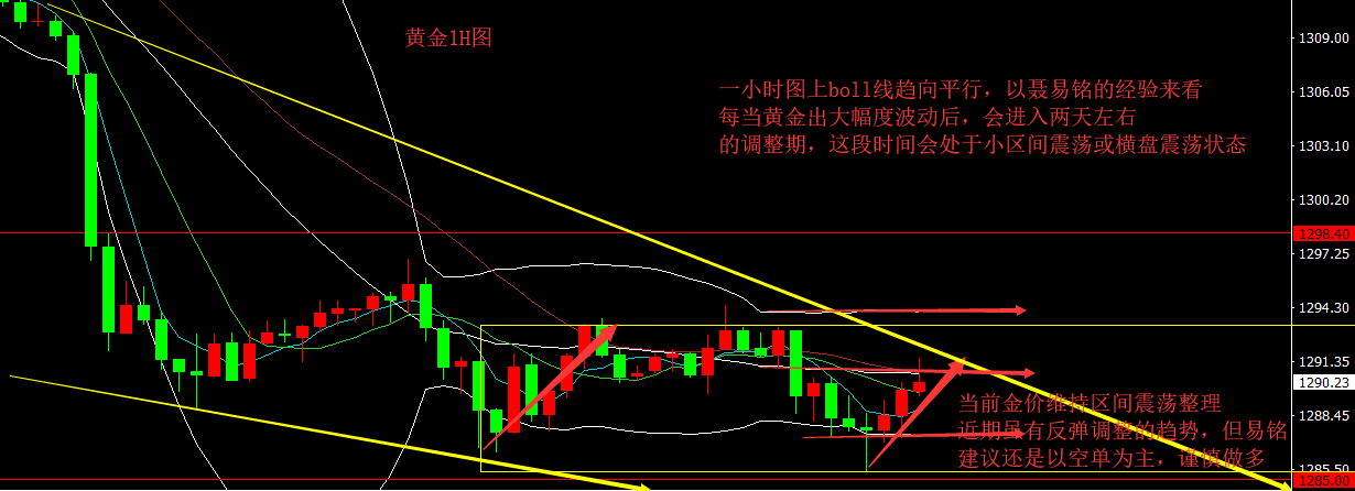 聂易铭:5.18持续两日窄幅震荡,日内高位空单没错 昨日(5月17日)金价连续第二日收出十字星,金价再次陷入窄幅震荡区间内,整体仍徘徊在1290关口附近,欧市盘中最低触及1285.20,近期美债收益率带动美元上涨令黄金承压。而昨晚(5月17日)公布的截至5月12日当周初请失业金人数虽然是利多黄金的,但是当前金价受美元的压制强