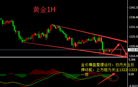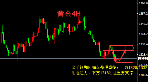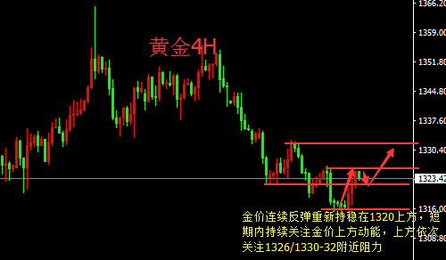 聂易铭:4.26持续压制,现货黄金恐寸步难行 目前黄金继续处于宽幅盘整状态,美元大幅升值,美国利率走高以及地缘政治局势缓和都是推动黄金下跌的动力。现货黄金在周三(4月25日)停止反弹转跌,金价触及四周低点,美市盘中最低下探至1318.51美元/盎司,在巨量卖盘的抛压下,盘中跌破1320美元关口,至收盘跌势才有所缓解;白银