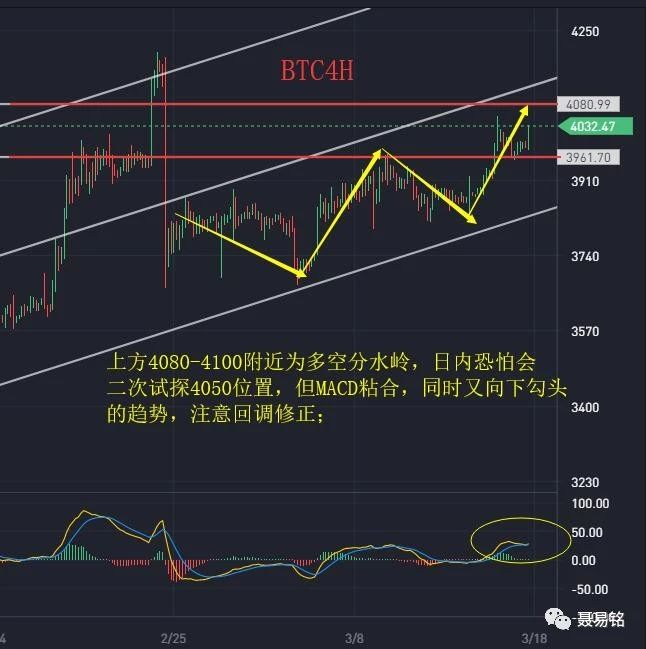聂易铭:3月18日数字货币强势拉升,后市恐有大瀑布! 新的一周又开始了,在过去的一周时间里,近7天比特币搜索指数整体日均值为14560,整体同比下降72%,环比下降2%;近7天区块链搜索指数整体日均值为4687,整体同比下降87%,整体环比上涨2%。近7天莱特币搜索指数整体日均值为1220,整体同比下降28%,整体环比下降13%,可见目前数字货币的持续活跃和关注度在不断降低,这对币圈来说可不是个好消息! 大饼自上周上涨之后,币价一直处于3860-4050之间震荡整理运行,依旧处于上行通道中,当前币价有上行测试通道中轨附近,上方4080-4100有明显的阻力,可视为短期多空分水岭的位置,一旦打