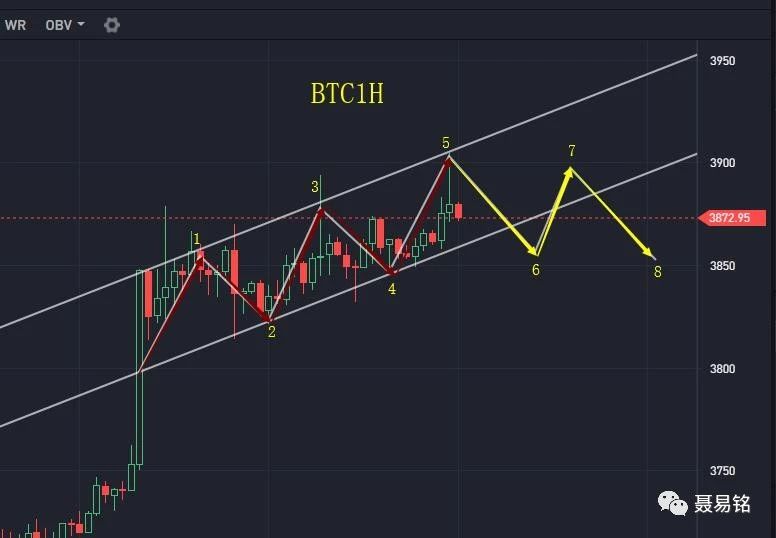 聂易铭:3月7日主流币上涨遇瓶颈,行情即将反转 经过了几天较大的行情波动,基本这两天都是维持震荡行情的,昨天又是一个震荡上行的趋势,短期上行的动能在不断的被消耗,而且随着平台币的不断被拉升,市场流量一部分被分走是必然的,而今明两天是市场反转的关键点,需要关注当前币价运行的重要阻力位,可以适当在受压力的地方着手埋伏空单了; 大饼经过了5号的一波拉升后,持续维持小幅震荡,但是当前小时图上上行通道已经形成,一次次的反弹回调都在上行通道的区间内,上轨附近压力,下轨附近支撑,走势上也有波浪理论的雏形在,在大循环中,前五段看涨,1,3,5拉升,2,4回落调整,后面的6,7,8浪则有可能走一个反转,趋势由