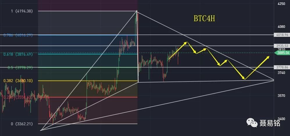 聂易铭:3月9日早间小幅波动释放动能,庄家出货在即行情又将现新突破 比特币经过一个星期的震荡整理,上涨的动能被明显削弱,今日早间的下跌是为在释放此前3月7号二次试探3900的动能,属于正常的技术回调,而昨天晚上的成交量上呈现缩量上涨,后市较大几率是庄家要出货,也算给大家提了个醒,此次回调是出货的正常回调的结果,短期趋势依旧是不会改变的,还是偏强; 长期上来看,聂易铭一直认为大饼的形态可以要走出两个三角楔形出来,近期的震荡上行和昨日币价的回调再次给了我一次信心,当前上方的阻力还是比较大的,近期虽然偏涨,而且币价在不断上行-震荡-回调中还有一次测试3950-3980的趋势,但最终会走向趋势下跌,