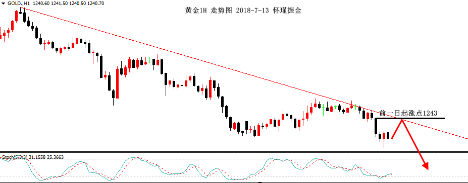 文 / 怀瑾握金 不要总以为行情辜负了你什么,在这个市场,没有谁活得比谁容易,交易简单就迷人;往往许多行情都如此,当你刻意追逐它时,它就会跑得飞快;当你摒弃表面的凡尘杂念,为了策略,为了计划,专心致力与每一波行情时,有些利润反而能轻易地得到。 周四,还是简单回顾下行情,金价至1256.5大跌之后,多次试探1241一线支撑,总是在附近反复挣扎,有挣扎就有质疑,那些不坚定的,估计都已割肉出局。 本周,黄金坚定看空,这么大的行情,虽然说没抓住多少但也还可以,昨日的1243-4空,已然拿到今天,当然现在也没有获利多少也就2个点。 今日,早间横盘整理,午后加速下跌,1241支撑强势击毁,现在又陷入震荡