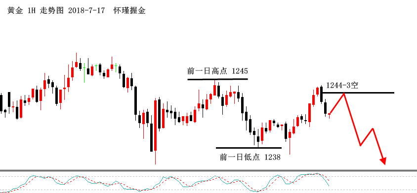 文 / 怀瑾握金 市场唯一不变的就是变。变是绝对的,不变是相对的。我们要随时要准备好变化的思维来看待行情。我们不可控的市场的变化,但是我们能够可能是头寸的建立方向和了结时间,把不可控的交给市场,把能够把控的控制在一定的范围,你才能在这个可变的市场里面持久的参与下去。 周一,行情还是依旧简单回顾下,昨日黄金以1240.7开盘,白盘价格一直在1240-1245区间反复拉扯,美盘之间开始之前小时线连阴走跌,以1238止跌,最终日线报收一根阴十字星。 隔夜,金价在大跌至1238.1后,向上反弹,但上行力度仍然不够,整个凌晨波动也就2个点,还好白盘安排的1242-4空,成功抵达1238.9,收割一波。