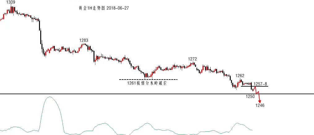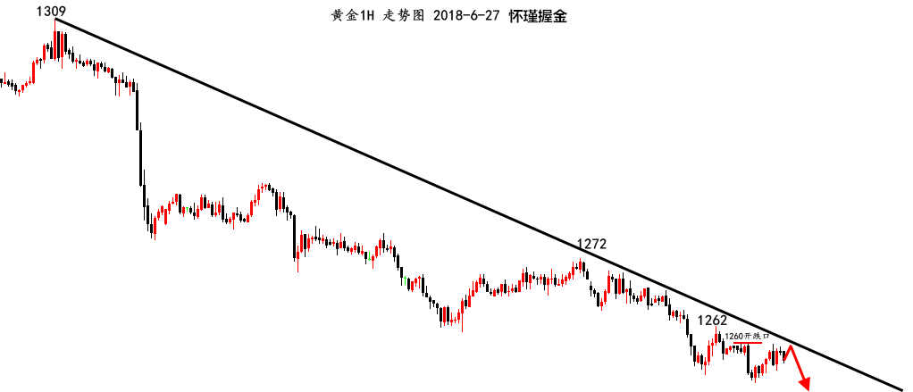 有的人被重重困难唬住,面对成功望而却步。这种人一生只能平淡而过,庸庸碌碌。而另一种人,为成功做出了努力,但也因被刺破手指终于没有成功。还有一种人,他们忍受着被刺的痛苦,在困难中艰苦地前进。 黄金,简单回顾下行情,昨日金价,跳多高走,不延续,小时线连阴下跌,欧盘前反弹至1270一线,欧盘震荡延续,最终以1265报收, 行情基本上就是按照口诀来走的,亚盘急跌无‘好事’,欧不破高美震荡,而我们早间布局的1266多单,成功抵达1270获利出局。 今日,黄金早盘震荡延续,午后小时线连阴下跌,强势击破1260一线支撑,继续向下跌落,强势行情需顺势而为,,亚盘下跌,欧盘破低,美诱多,所以晚间继续坚持欧盘1