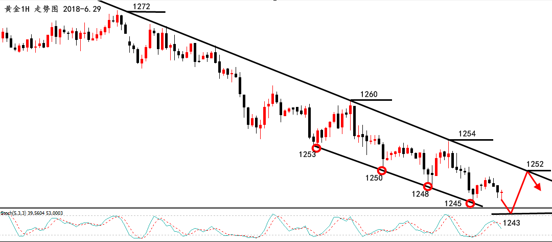 做交易,难在看懂,停在情绪,断在行动,懒在依赖,快在独立,乱在拉人,盈在跟对,苦在单干,巧在借力,亏在自私,错在指责,胜在检讨,差在不改,累在盲目,贵在付出,赔在自大,输在少学,败在放弃,成在坚持。投资其实是一个自我经营的漫长过程。 周四,黄金依旧延续弱势行情,继续向下跌落,早间金价震荡下行,午后后加速下跌至1248,未延续,向上反弹,而晚间公布失业金利多的情况下,都没能带动黄金的上涨,在一次的证明了黄金极弱的趋势。 隔夜,黄金再一次的刷新了新低,自美盘开盘小时线连阴下跌至1245附近,而我们白盘安排的1253空,如期的斩获6美出局。 今日,黄金早间继续向下跌落,捡钱行情还在等什么,机会有了