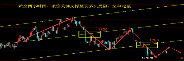 我记得在三月份我就说过,其实黄金在很大一部上是消息面在利多,而技术面是在走空的,上次黄金的一个冲高回落相信对于好多人来说都是并不陌生,因为我可以说现在还有好多人还有1315,1318,1320,甚至还有1324的多单被套的,说到着可能还有一部分投资者会说自己还有1285,1288,1290的空单在手,会不会成天地锁,这波黄金反弹具体能反弹到哪?自己的单子什么出才是最合适的下面我从当前的消息面和技术面来详细的给大家解说一下,具体操作思路每天都会在朋友圈和微博中发布,大家先不要着急,其实我也知道大家最关心的是下一步的操作,今天我也明确说明了,稍后中线布局也即将进场,具体操作思路和策略都已经计划完