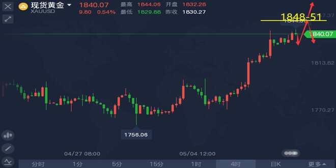 走过的是时间,看过的是行情,尝过的是盈与亏,回味的是得与失,沉淀的是经验,成就的是境界,苦辣酸甜感慨万千,淡然处之、与市无争、万事不忧、烦事不思、遇利不贪、遇险不乱、按部就班、运筹帷幄、步步为营、方能身处乱市一切尽在掌握,稳步前行。反之,若只贪恋利润,无视风险,激进好战,死扛到底,则必败。市场走势,千变万化,只有与时俱进,跟随趋势,方能立足。另外,投资市场是一个出现奇迹,相信奇迹,并创造奇迹的地方,获利是需要一套完善的系统,等到掌握这套完善的系统之后,市场将不再捉摸不透,而是成为我们的朋友。 黄金资讯分析: 北京时间晚20:30美国劳工部公布的4月非农就业数据出炉:在市场普遍预期4月非农就业