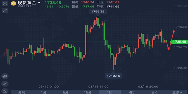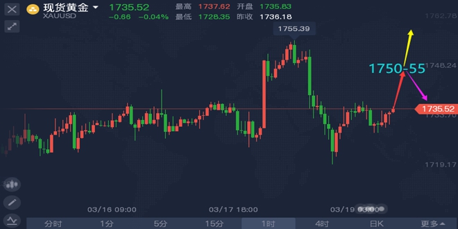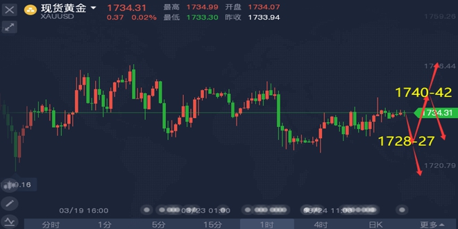 相识是缘,相知则是份。谭鑫晟坚信有缘千里终相识,无份擦肩乃天命。投资的路途很漫长,一时的得失只是途中的冰山一角。要知道智者千虑必有一失,愚者千虑必有一得。当你的能力还驾驭不了你的目标时,那就应该沉下来历练,只有通过学习、交易、总结,你才会明白,其实自己真的不是不被市场接纳,只是以前不愿意改变而已。目前本团队福利限时发放,加入本团队实盘指导,即可享受免费的行情分析以及实盘交流现货投资学习 机会,欢迎前来咨询交流、考察现价单,准确率! 黄金资讯分析: 周五(3月19日)亚洲时段,现货黄金小幅下跌到1728附近后转涨目前已经上涨至1735附近震荡。周四(3月18日)金价探底回升,美元与美债收益率的